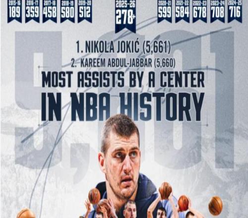 在幾乎所有人心目中,掘金球星尼古拉·約基奇是NBA歷史上最會傳球的中鋒。北京時間12與19日,在掘金主場對陣魔術的比賽中,約基奇上半場送出9次助攻,至此他生涯總助攻次數(shù)達到5661次,超越賈巴爾,成為NBA歷史助攻榜第一人。